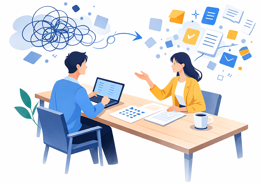 判断が詰まりやすくなっている構造を、目に見える形にします