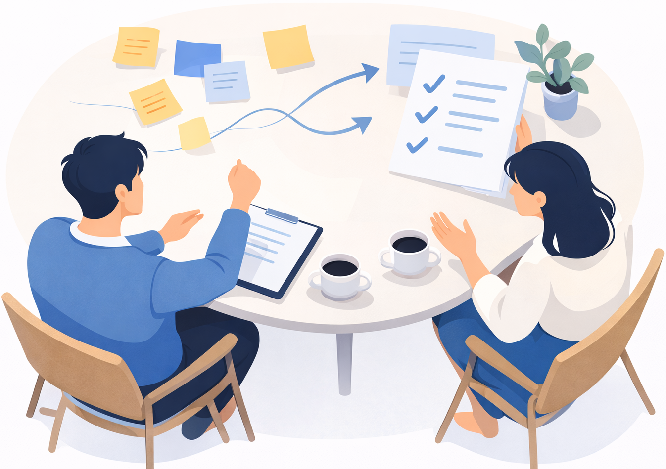 判断が詰まっているポイントが分かると、次に何を考えればいいのかが自然と整理されます。無理に答えを出さなくても、進む方向だけははっきりします。